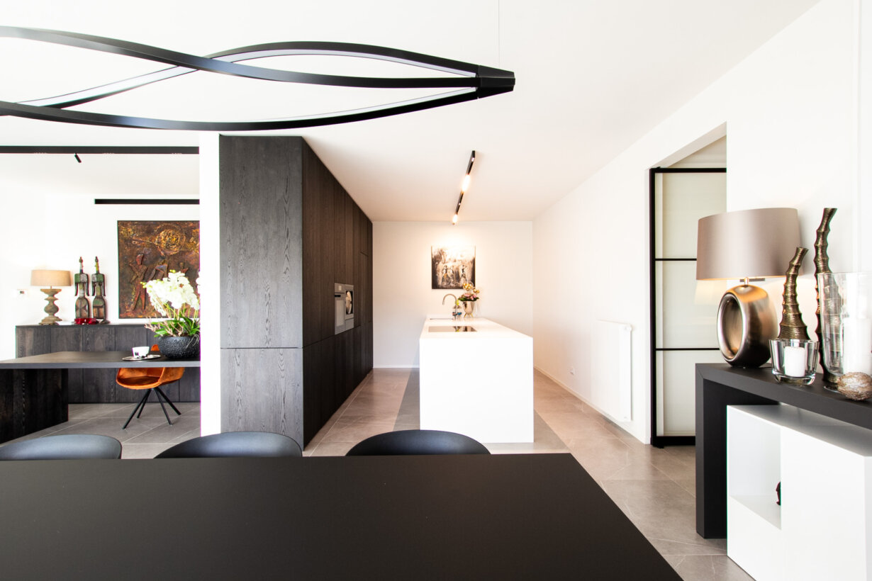 In deze woning hebben we gekozen voor een unieke benadering van de keukenontwerpen. We wilden iets speciaals creëren dat niet alleen functioneel is, maar ook een visueel statement maakt. Met slimme keuzes in materialen, verlichting en ontwerpdetails hebben we een keuken gecreëerd die zowel modern als tijdloos is.