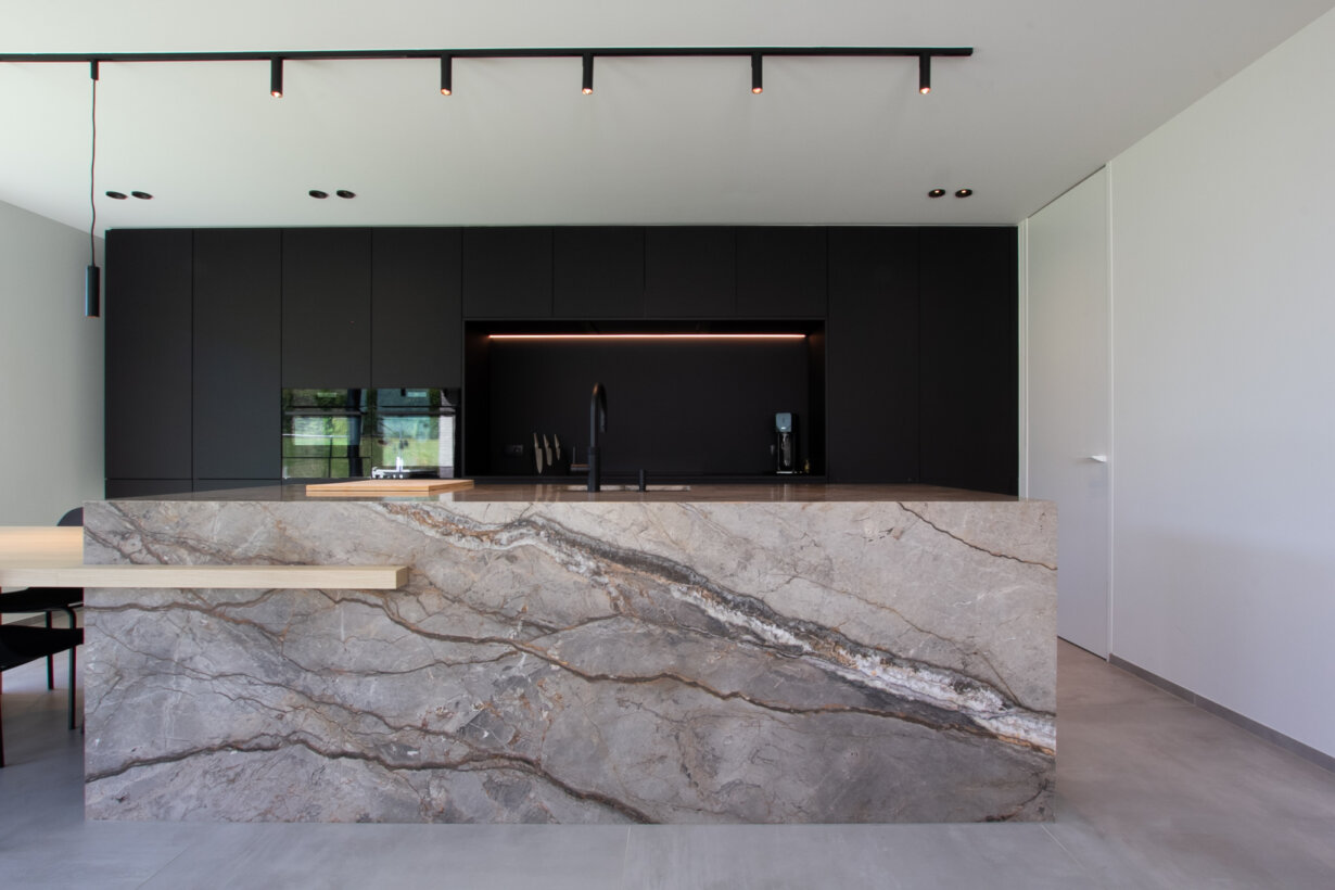 Deze klanten waren op zoek naar de perfecte balans tussen strak design en warme elementen. In deze keuken hebben we zwart en marmer gecombineerd om een stijlvolle en moderne uitstraling te creëren. We hebben een ruimte ontworpen die niet alleen functioneel is, maar ook een echte eyecatcher.De perfecte balans tussen strak design en warme elementen