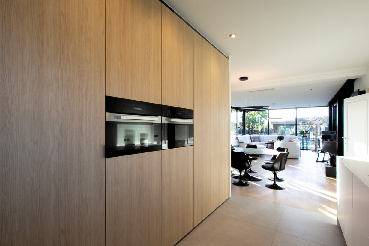 Deze unieke keuken weerspiegelt onze passie voor het combineren van materialen en het maximaliseren van ruimte. In deze woning combineerden we Corian met Light Tunis Oak om een tijdloze, functionele en esthetisch mooie ruimte te creëren die perfect past bij de woning en levensstijl van deze klanten.