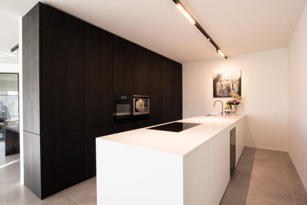 Het totaalconcept van dit project draait om naadloze integratie, waarbij elk element zorgvuldig is gekozen en geplaatst om een samenhangend en functioneel interieur te creëren. De combinatie van materialen, aandacht voor details en hoogwaardige apparatuur zorgt voor een unieke, gestroomlijnde leefomgeving die voldoet aan de hoogste standaarden van comfort en esthetiek.